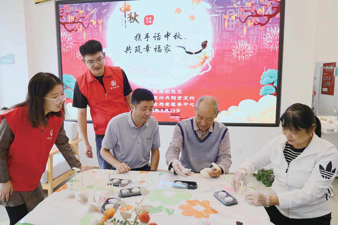 携手话中秋 共筑幸福家 丹阳日报 2025-10-01 11:00 昨日,市民政局团总支和丹阳农行青年志愿者来到丹优享综合为老服务中心开展“携手话中秋 共筑幸福家”主题活动,与老人们欢聚一堂,DIY月饼、听金融宣传,共迎国庆、中秋佳节。(记者 溢真 通讯员 华元成 摄) 举报